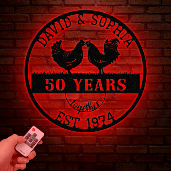 Custom 50 Years Together Anniversary Sign – Personalized Couple Name Sign with Chicken Couple, Perfect Anniversary Gift, Wedding Gift