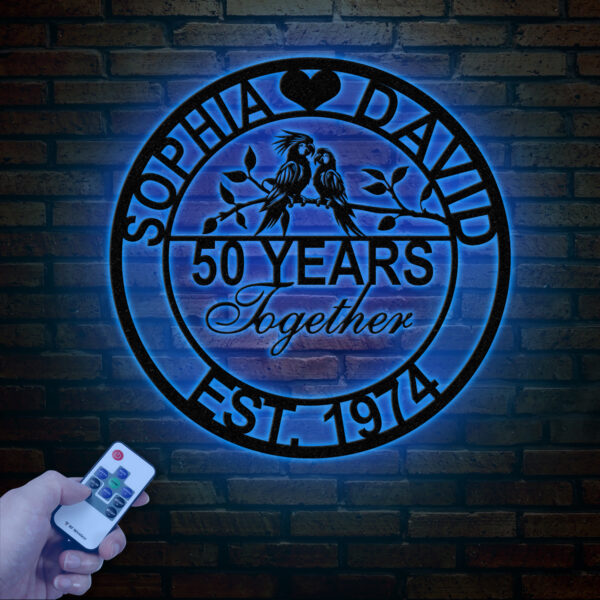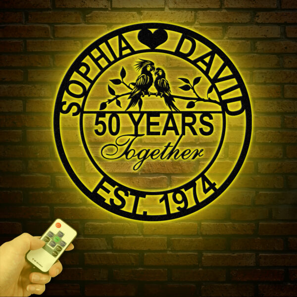Custom 50th Anniversary Gift – Golden Anniversary Parrots Metal Sign, 50 Year Wedding Anniversary Wall Art Decor, Couples Milestone Gift