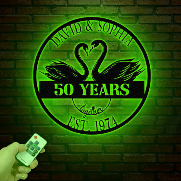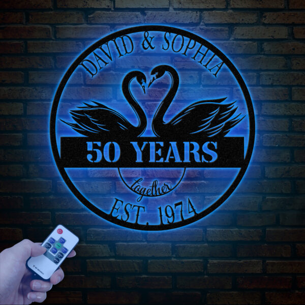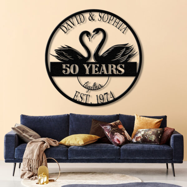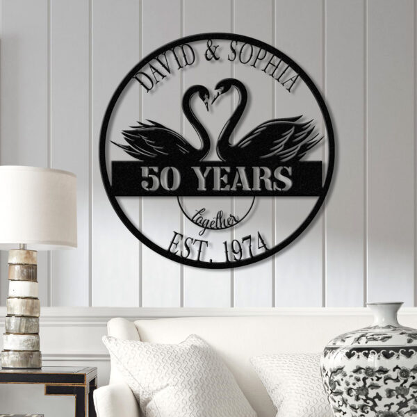 Custom 50th Anniversary Gift, Golden Wedding Metal Swan Sign, Personalized Wall Art for Parents, Husband Wife, Friends, Besties Couple Gift