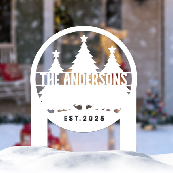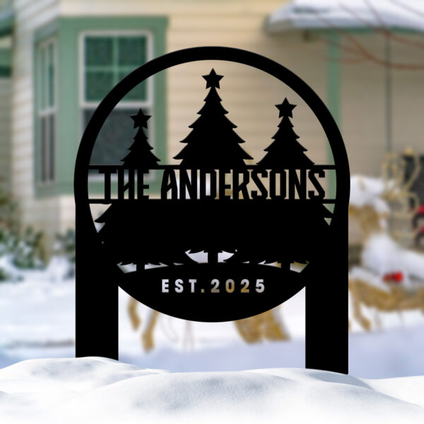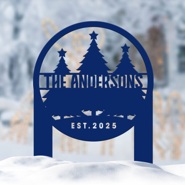 Custom Family Name Christmas Tree Metal Yard Stake, Outdoor Christmas Decor, Holiday Decor, Merry Christmas Sign, Outdoor Decoration