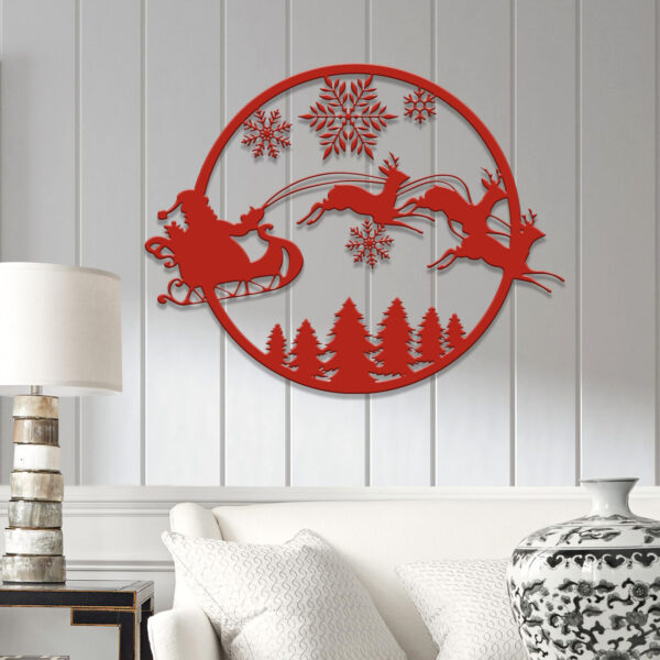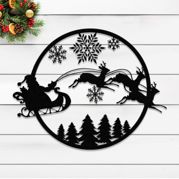 Santa Riding a Sleigh Metal Wall Art, Personalized Christmas Name Sign, Christmas Decor, Christmas Family Gift, Winter Home Decor