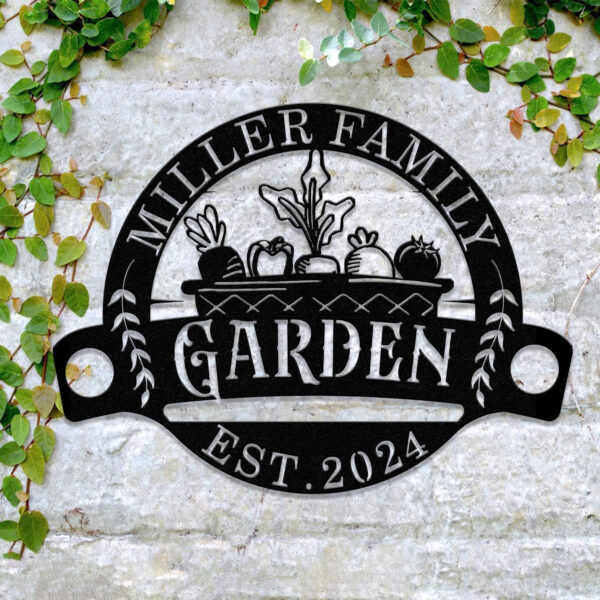 Custom Garden Metal Sign, Vegetable Garden Hanging, Family Last Name Backyard Sign, Vegetable Garden Decor, Home Grown Veggie Yard Art